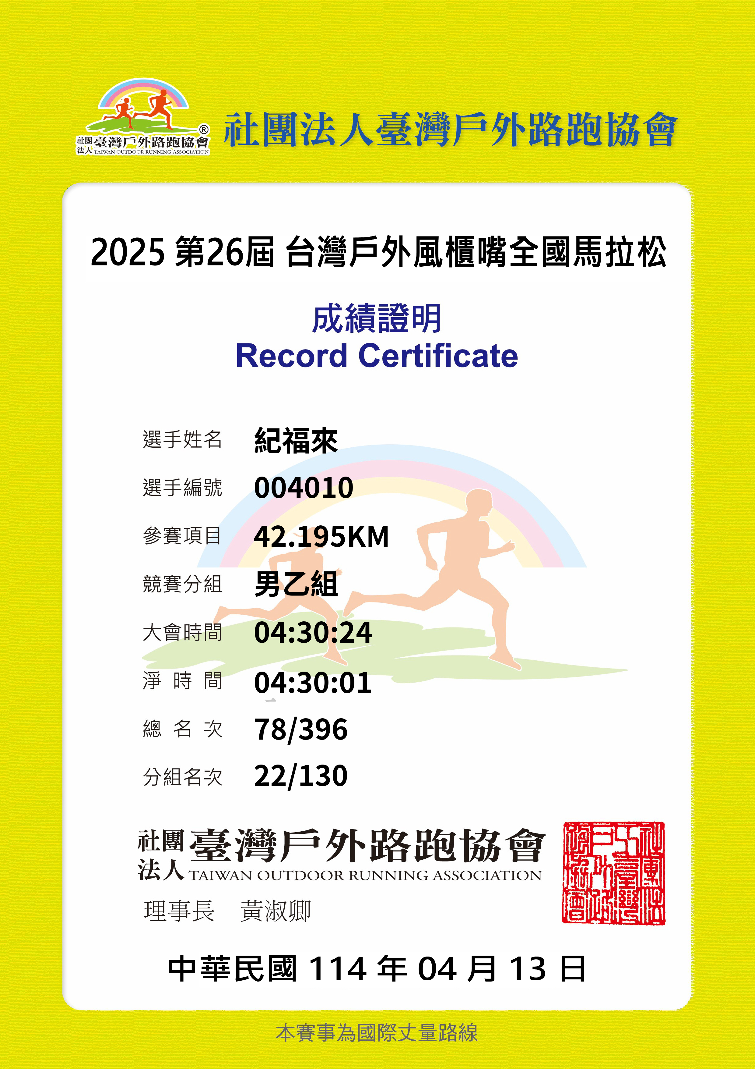 大會成績 Official Time