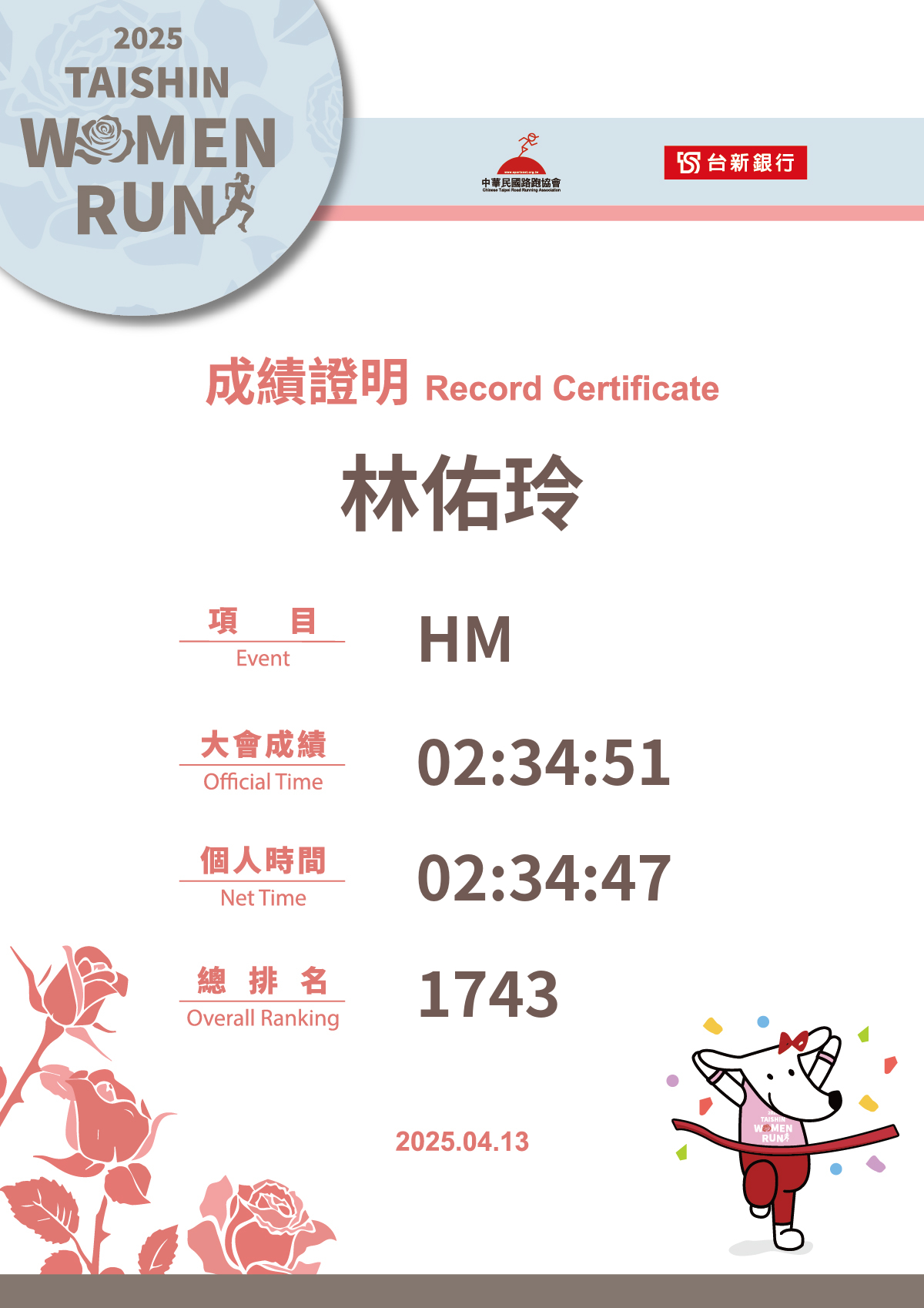 • 即時成績排名僅供參考,正式成績排名應以主辦單位公告為準。