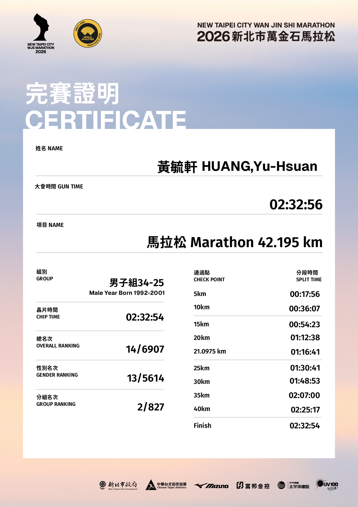 大會成績 Official Time