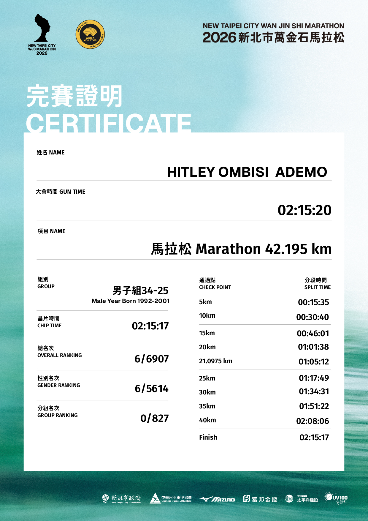 大會成績 Official Time