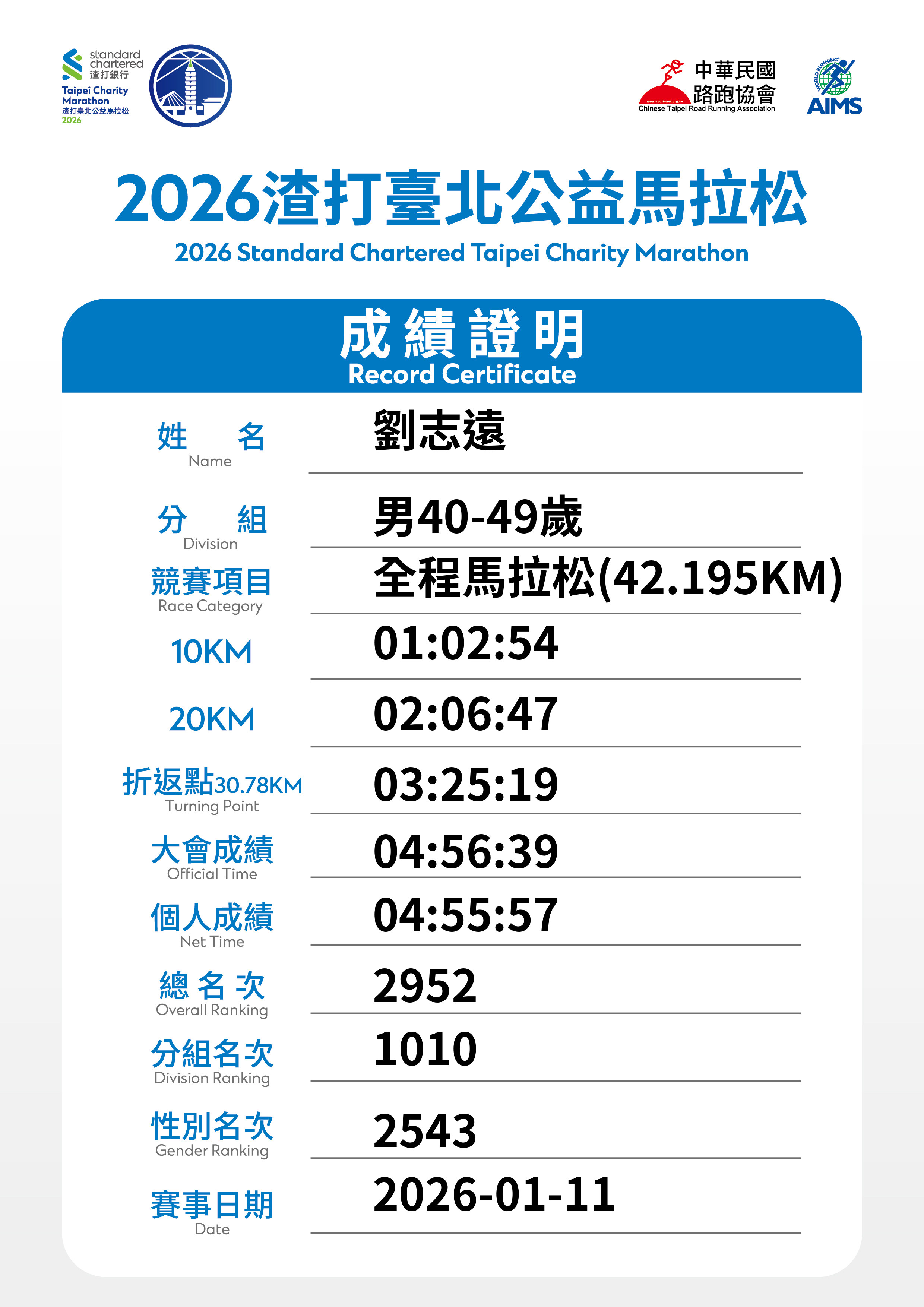 大會成績 Official Time