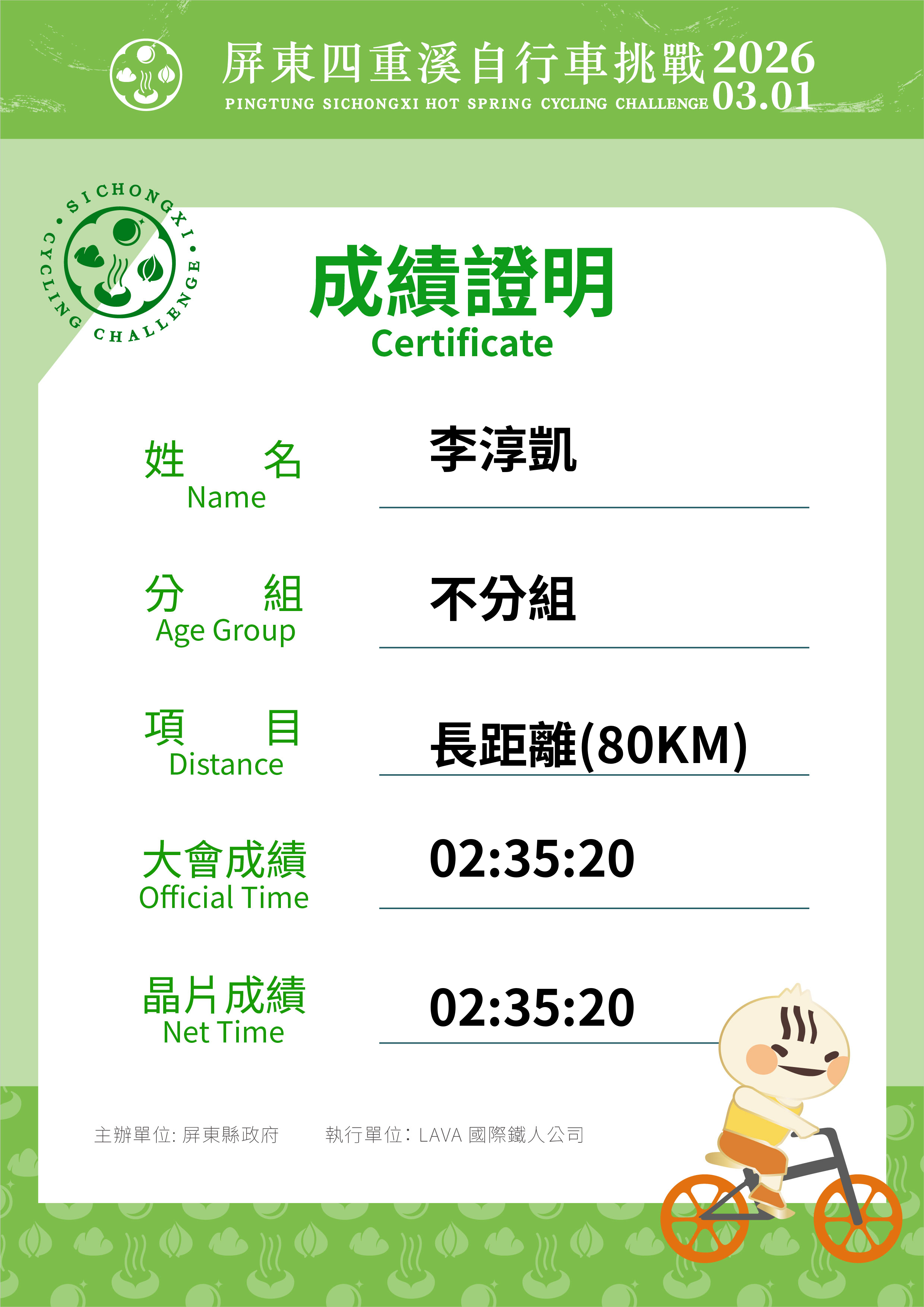 大會成績 Official Time